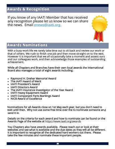 • The IAATI Insurance Investigator of the Year Award